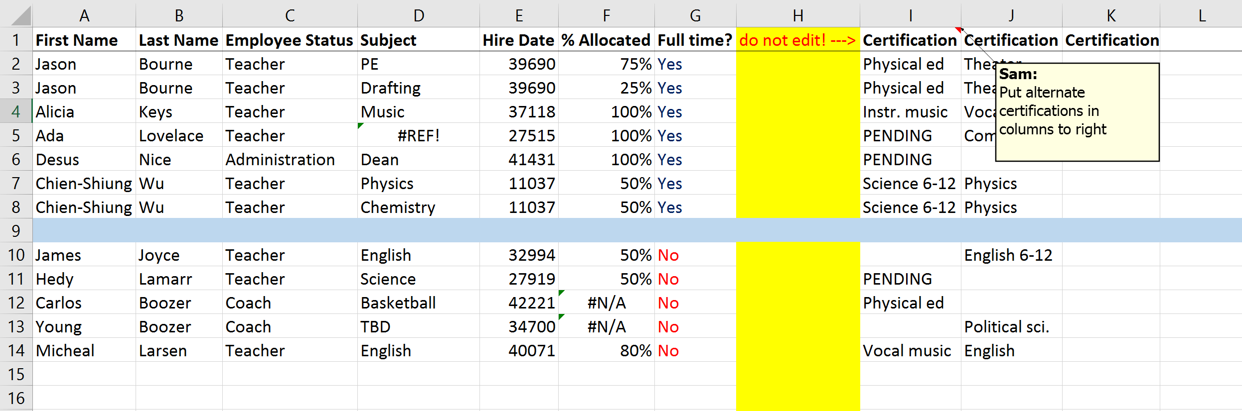 ## $ Certification...9 <chr> "Physical ed", "Physical ed", "Instr. music", "...