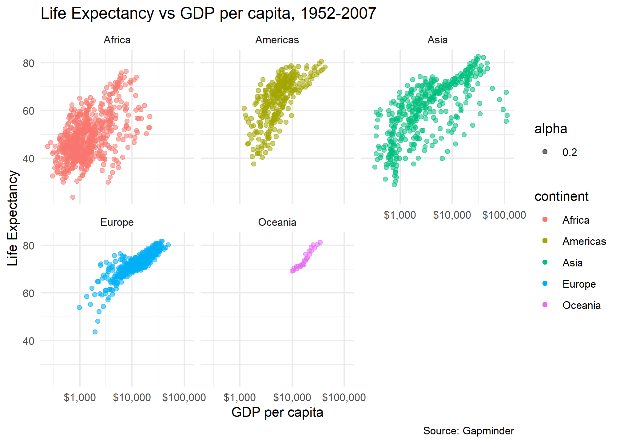 labs(title = "Life Expectancy vs GDP per capita, 1997-2007",