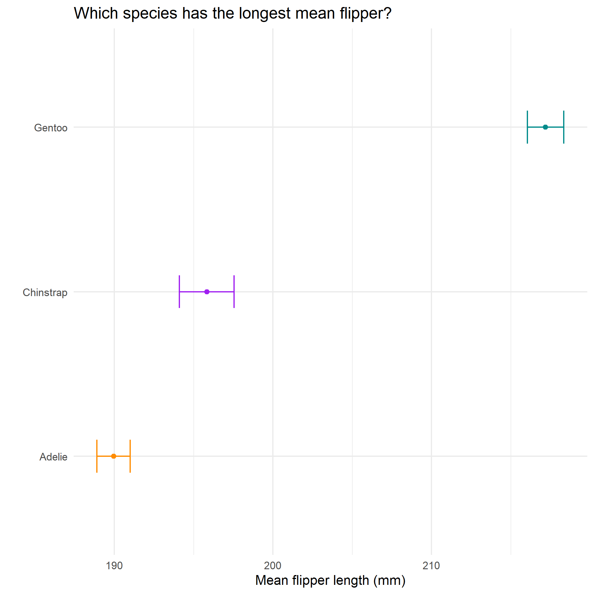 | species | mean_flipper_length | sd_flipper_length | count | t_critical | se | margin_of_error | ci_low | ci_high |