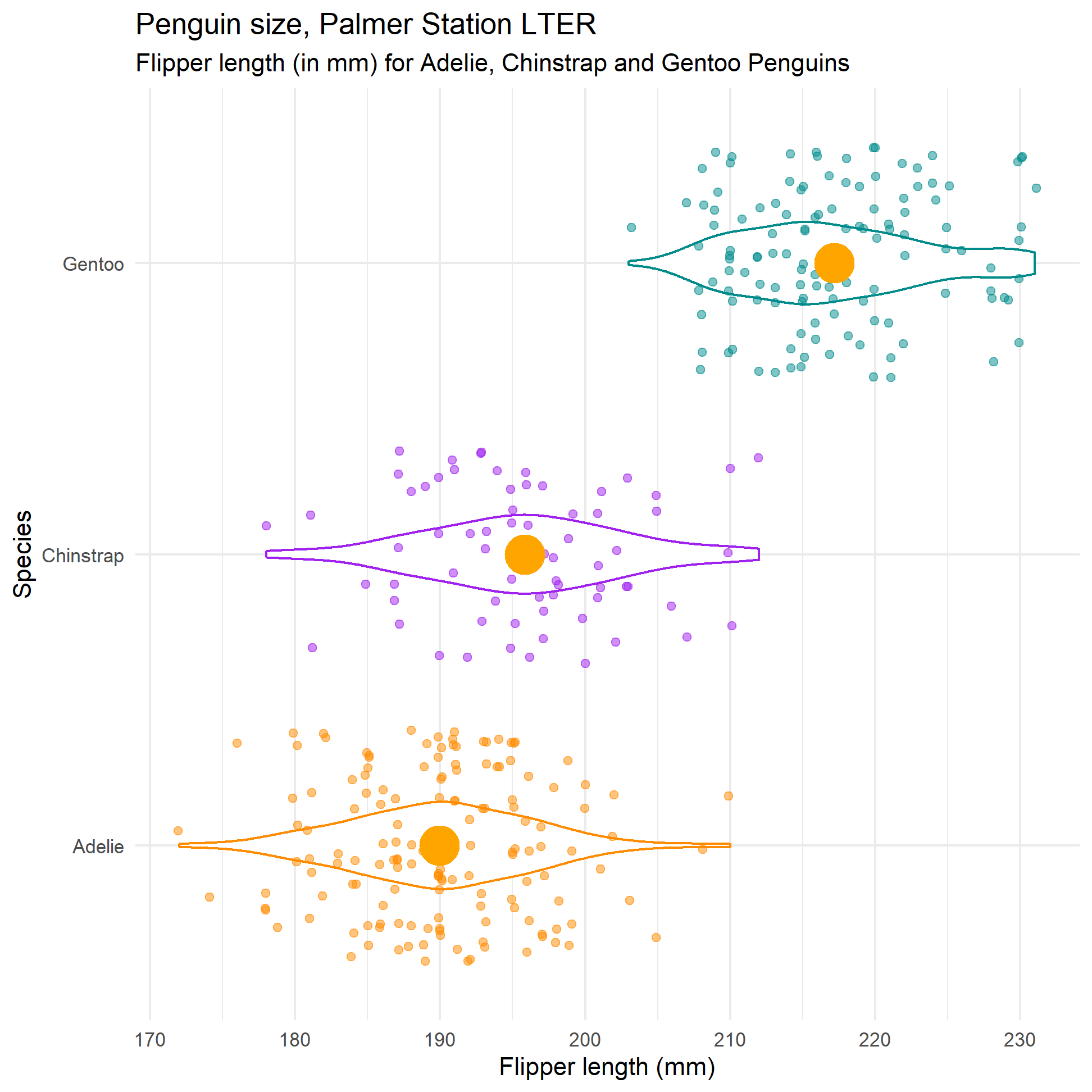 aes(x=mean_flipper_length, y = species), colour = "orange", size = 8)+